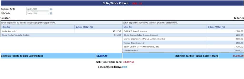 2025 Yılı 1. Dönem Gelir Gider Raporu